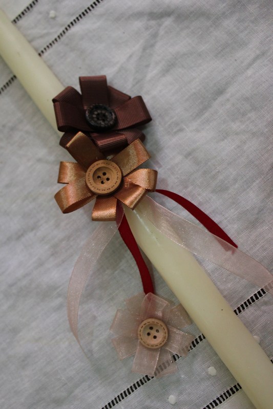 bow and button palm sunday candle |marmite et ponpon