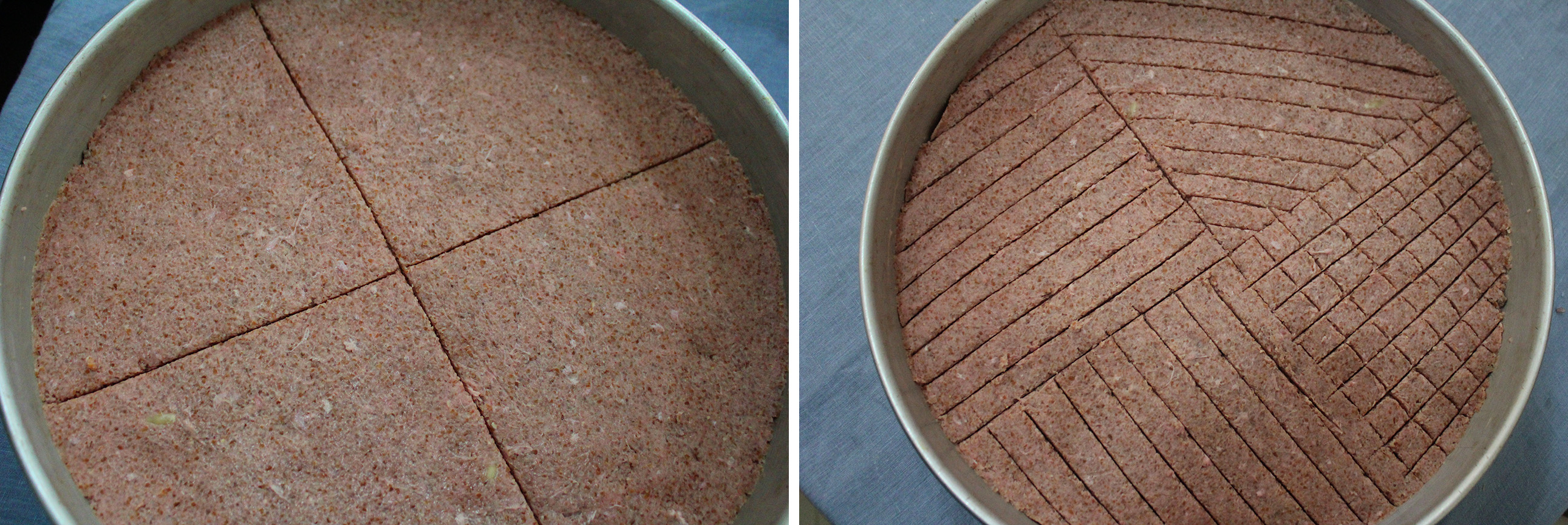 Now the fun part of it! Decorating the upper part. Use a knife to divide it in 4 equal parts, design each part differently. This is how mum makes it.