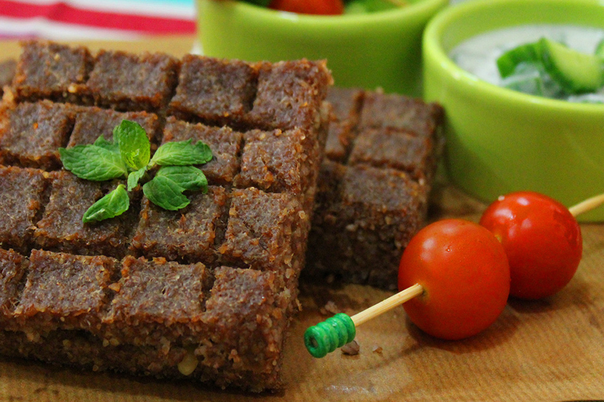 Kibbeh bil sanyeh can be served with a cabbage salad or minted yogurt with cucumber dip.
