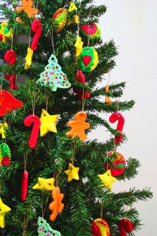 christmas tree with handmade ornaments 3