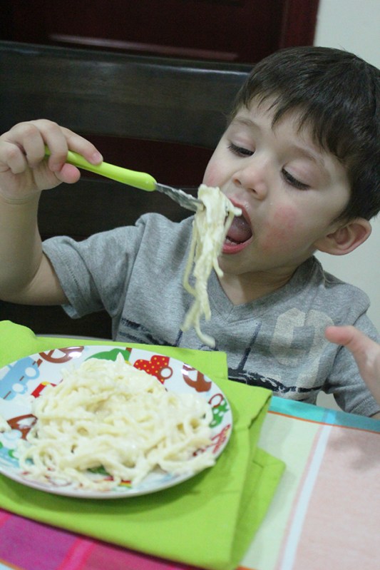 Published April 30, 2015 at 630 × 945 in “Mini chef in the kitchen” 3- Easy and quick as 10 mns cheese bechamel spaghetti