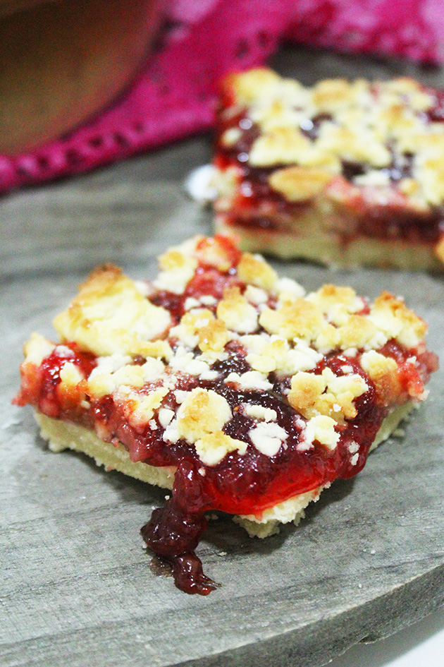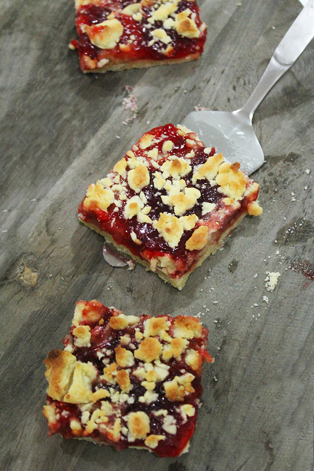 Crumble the rest of the dough over the jam and bake again for another 10 minutes.