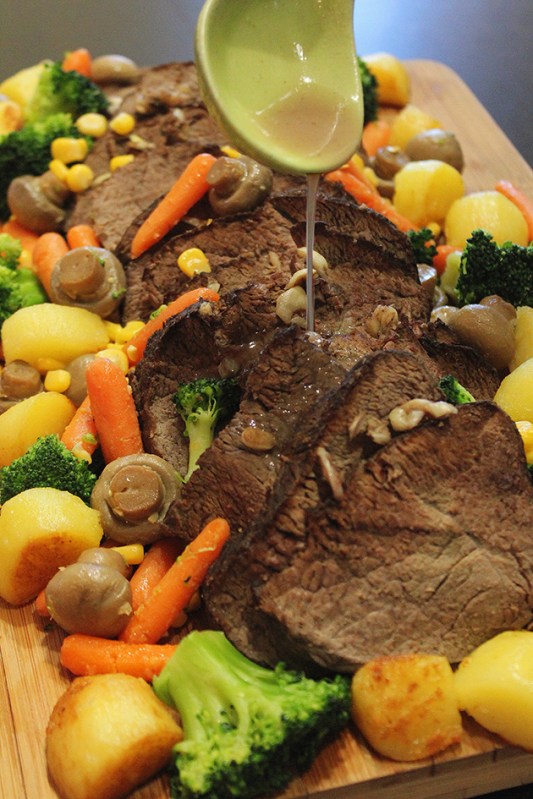 Published June 14, 2015 at 630 × 945 in Perfect pot roast beef with vegetables and gravy