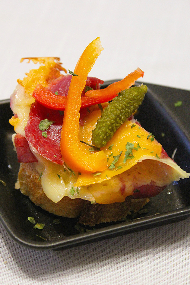 You can simply pour the melted cheese over these ingredients or include baguette slices.