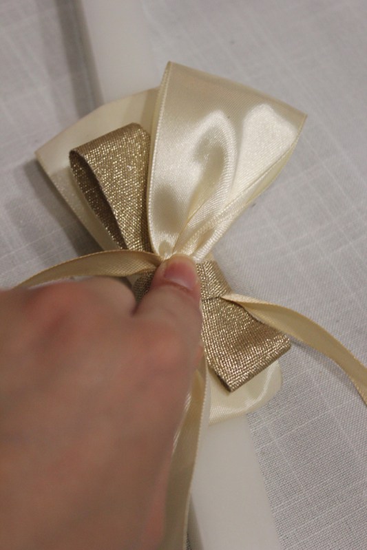 bow and button palm sunday candle |marmite et ponpon