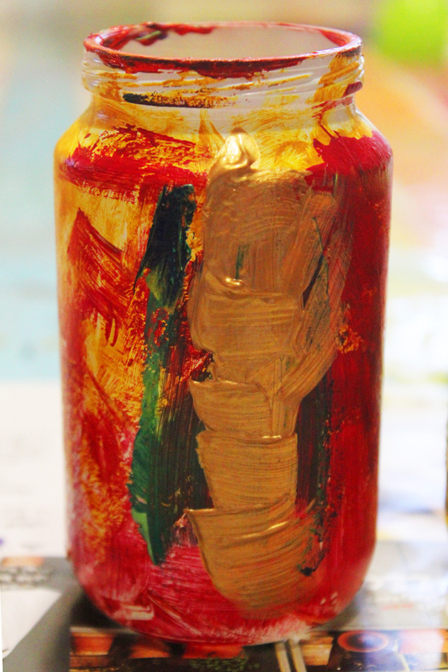 Published April 25, 2016 at 630 × 945 in Magazine flowers & food jar vase – recycling craft