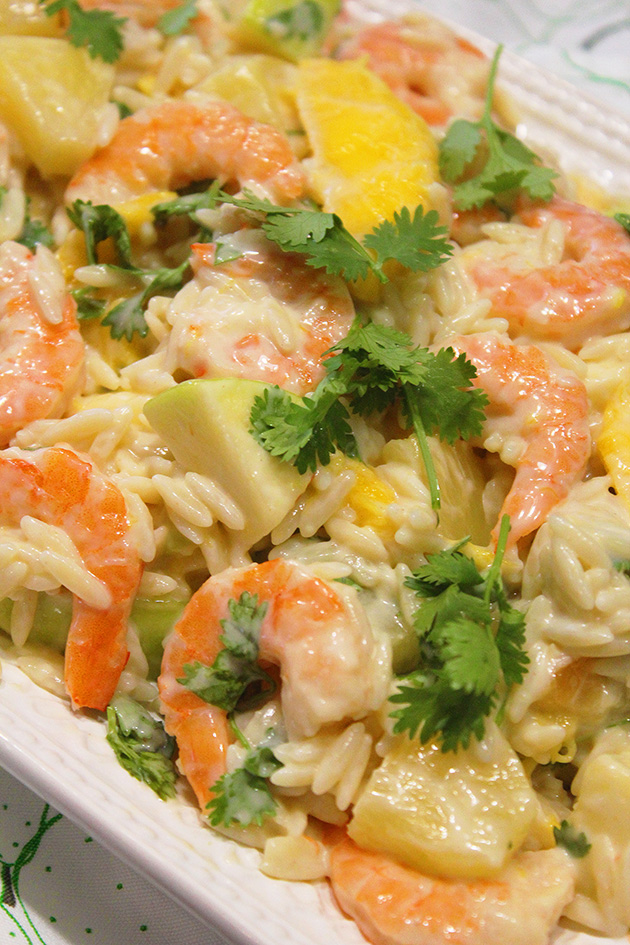 Published April 26, 2016 at 630 × 945 in Shrimp orzo salad with tropical fruits