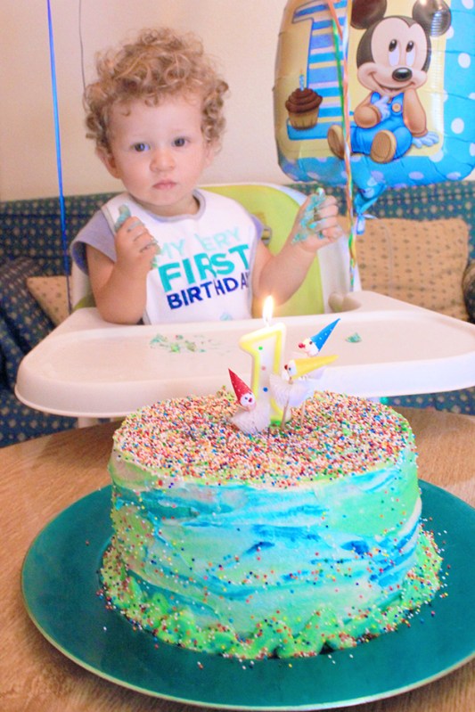 Published August 1, 2016 at 630 × 945 in “Funfetti cake” Happy 1st birthday my Joud