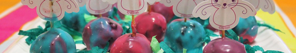 Dip it in melted white chocolate, or color it with springy colors, using food color gel. Insert the bunny picks, and let it chill a bit in the fridge before serving.