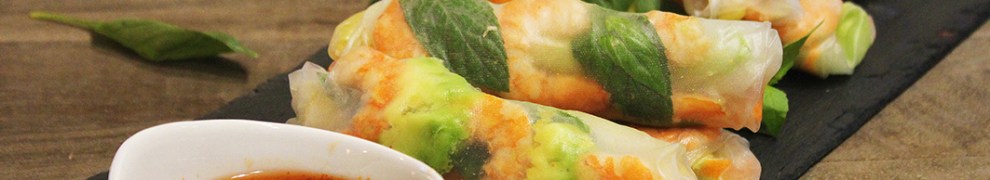 Basil, shrimp, avocado and mango fresh rolls|marmite et ponpon