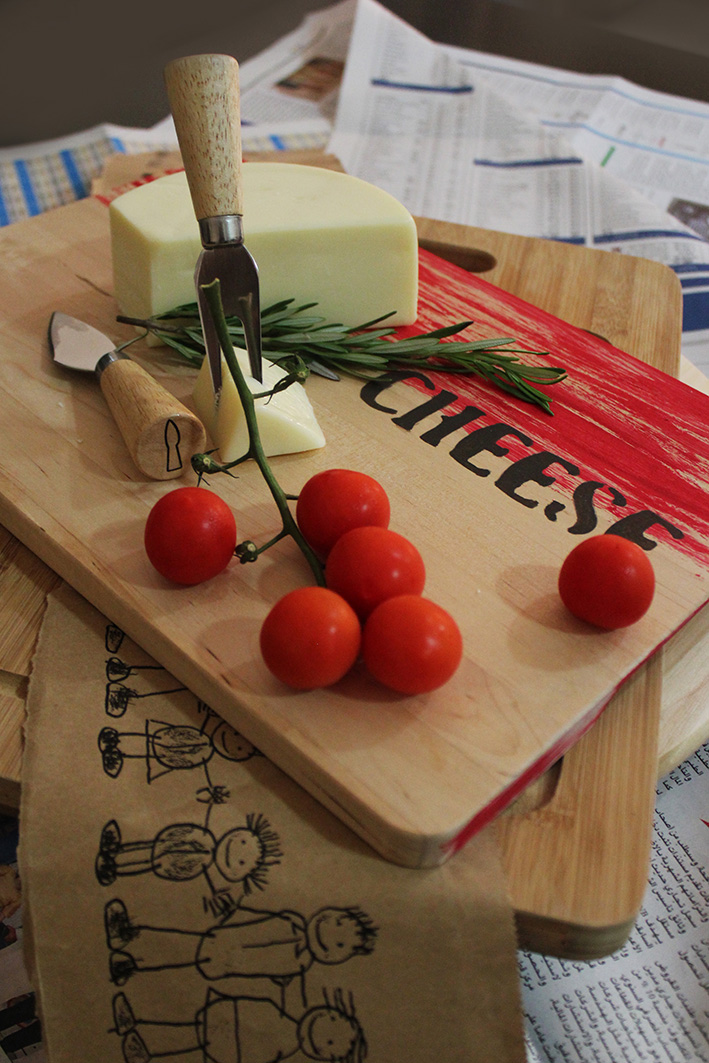 After the sharpie plates DIY , today’s craft is very simple and could be done in couple of hours. it’s often the simplest ideas that are the most striking. Adding some colors and typography to my cheese board, made all the difference!