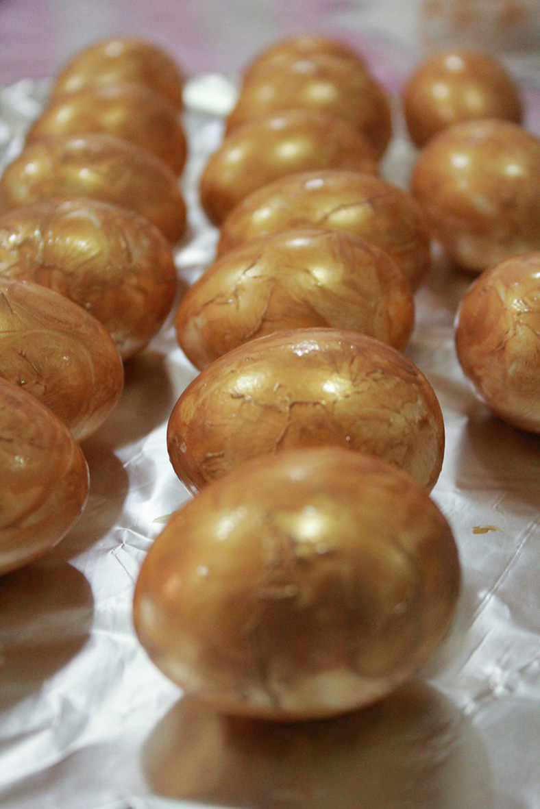 Very easy technique to decorate eggs, and it’s safe to eat them later. You don’t need colorings nor any other unsafe products. All you need is: