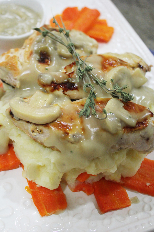Meantime prepare the vegetables you like to serve with the meat, i did carrots and broccoli (steamed then sautéed with butter, salt and pepper), mushroom and corn (out of tins) and sautéed with butter, salt and pepper. and finally potato cubes (fried then sautéed with butter, salt and pepper) you can replace with mashed potato if you like. Some people like to serve it also with peas, green beans and shallots. Choose your veggies to your liking.