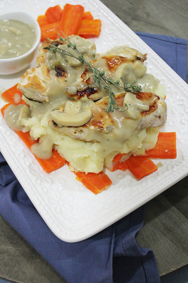 Transfer your meat to a cutting board and try to slice it as thin as possible. Serve it with the veggies, potatoes and gravy. I love to have it also with a side salade (green salad with vinaigrette).